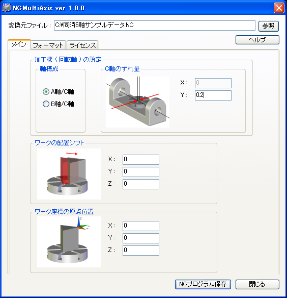 | NCMultiAxisは、5軸のNCプログラムの変換ソフトです。