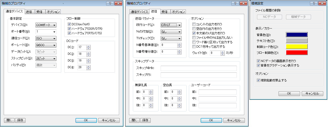 コード体系としては一般的なISOコード、EIAコード、ASCII コードの3種類をサポートしており、任意の制御 コードや改行コードの指定も可能です。 |